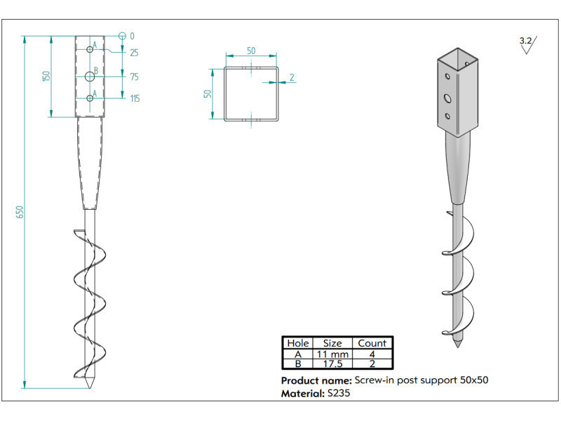 Rögzítés: Ha a csavar a helyén van, azonnal rögzíthető benne a faoszlop vagy a fémváz.