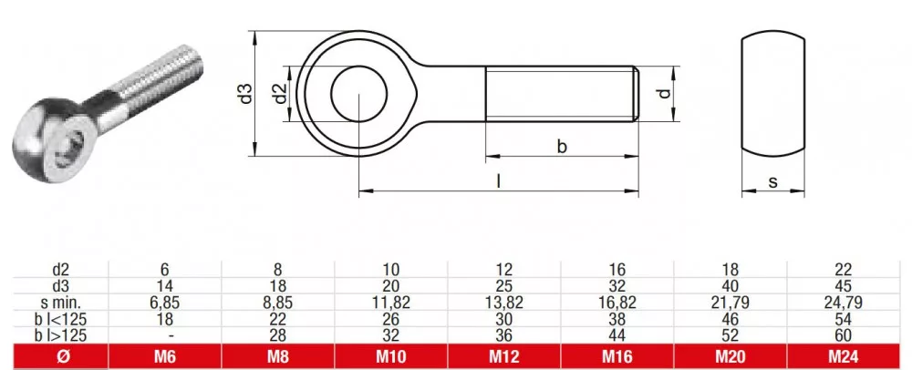 Rozsdamentes (A2) szemes csavar (DIN 444/B)
